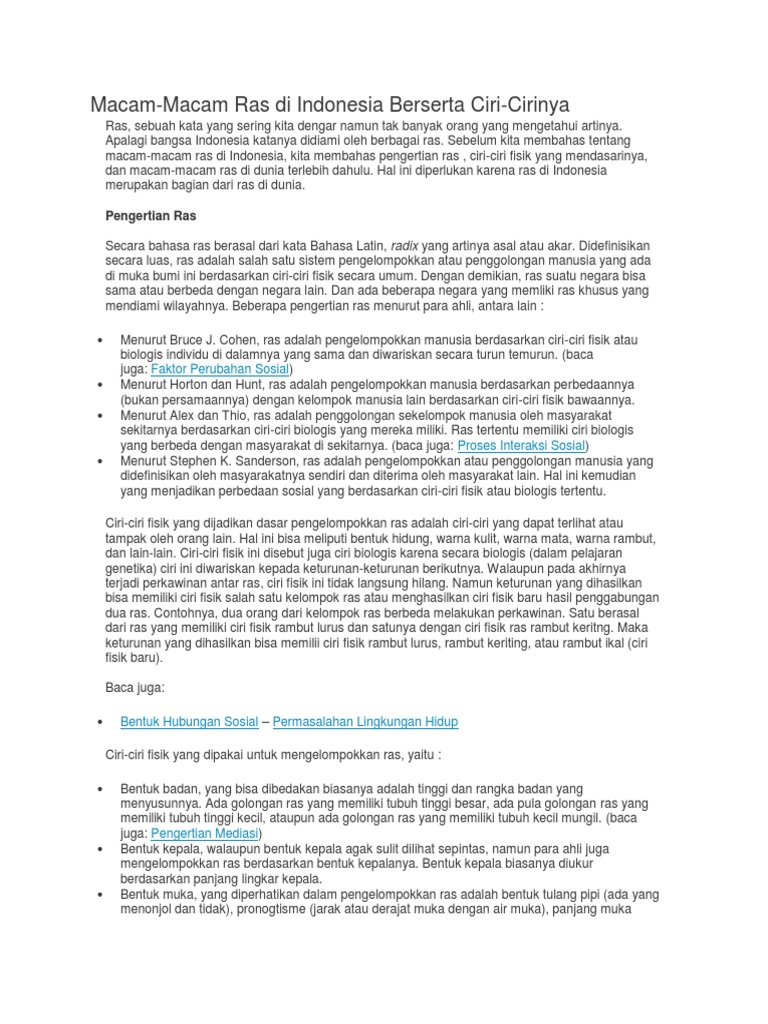 Ras Pengertian Macam Ciri dan Faktor Terjadinya Ras di